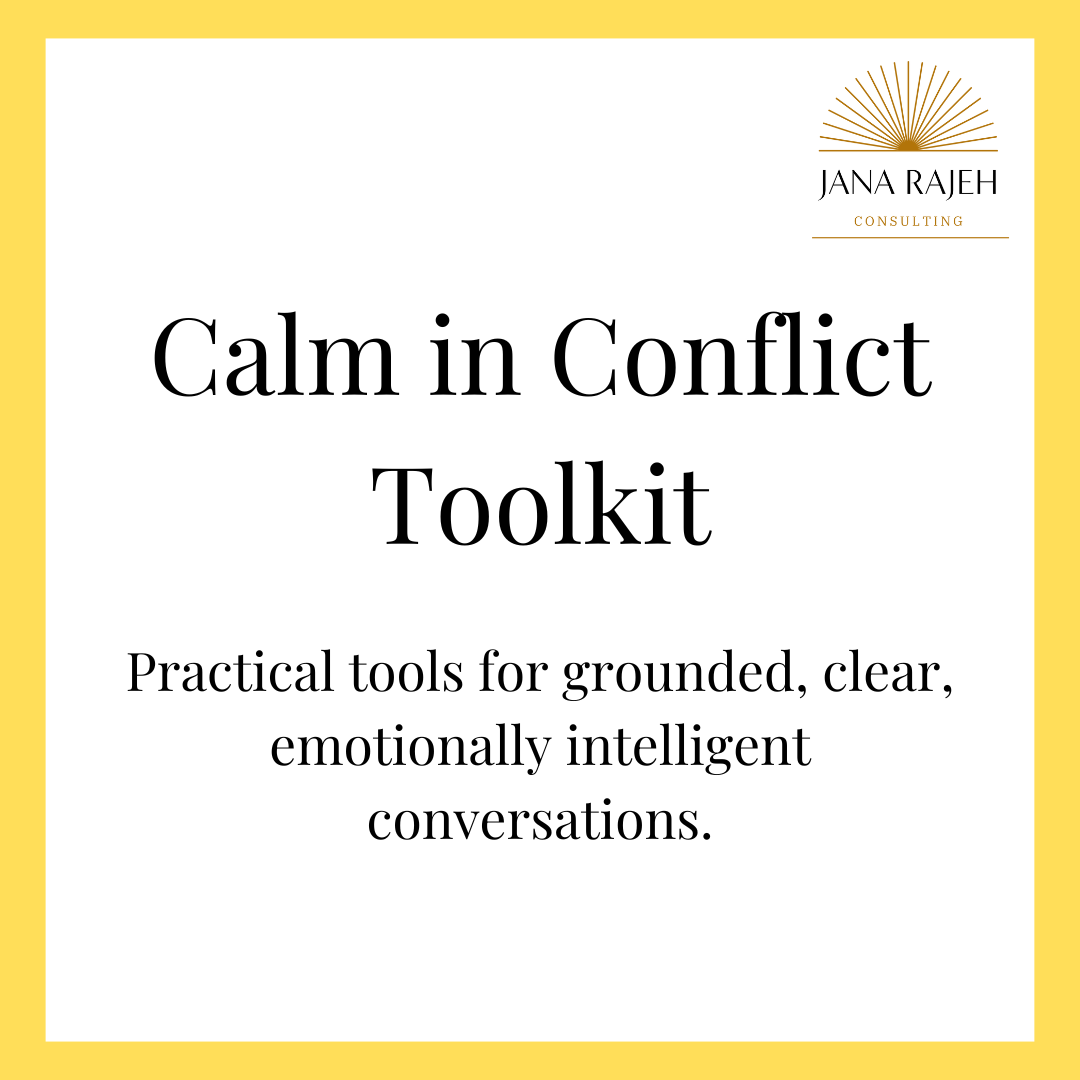 Download Your Free Conflict Toolkit Get 5 science-backed tools to help you stay calm, communicate clearly, and handle conflict with emotional intelligence at home, at work, or anywhere it matters.Enter your email to receive it instantly and get occasional tips on communication & self-regulation. First Name Last Name Email Address Send Me the Toolkit You're all set!Your Calm in Conflict Toolkit is on its way to your inbox — check your email for the download link.Inside, you’ll find practical tools to help you pause, respond with intention, and navigate tough conversations with more emotional clarity and calm.This is where stronger communication begins.Jana Newsletter Now live — every Tuesday!Get one practical insight each week to help you stay calm under pressure, navigate tough conversations, and speak with more clarity and confidence. Plus, early access to workshops and events.💌 Clear & Connected drops every Tuesday — free in your inbox. First Name Last Name Email Address Sign Up You're in! You're officially Clear & Connected.Your welcome email is on its way and if you signed up today, you can still catch this week’s edition right here.(If you don’t see it, check your spam or promotions folder and mark it as ‘Not Spam’ to make sure you get next Tuesday’s newsletter.)Thanks for joining the community — I’m so glad you’re here.